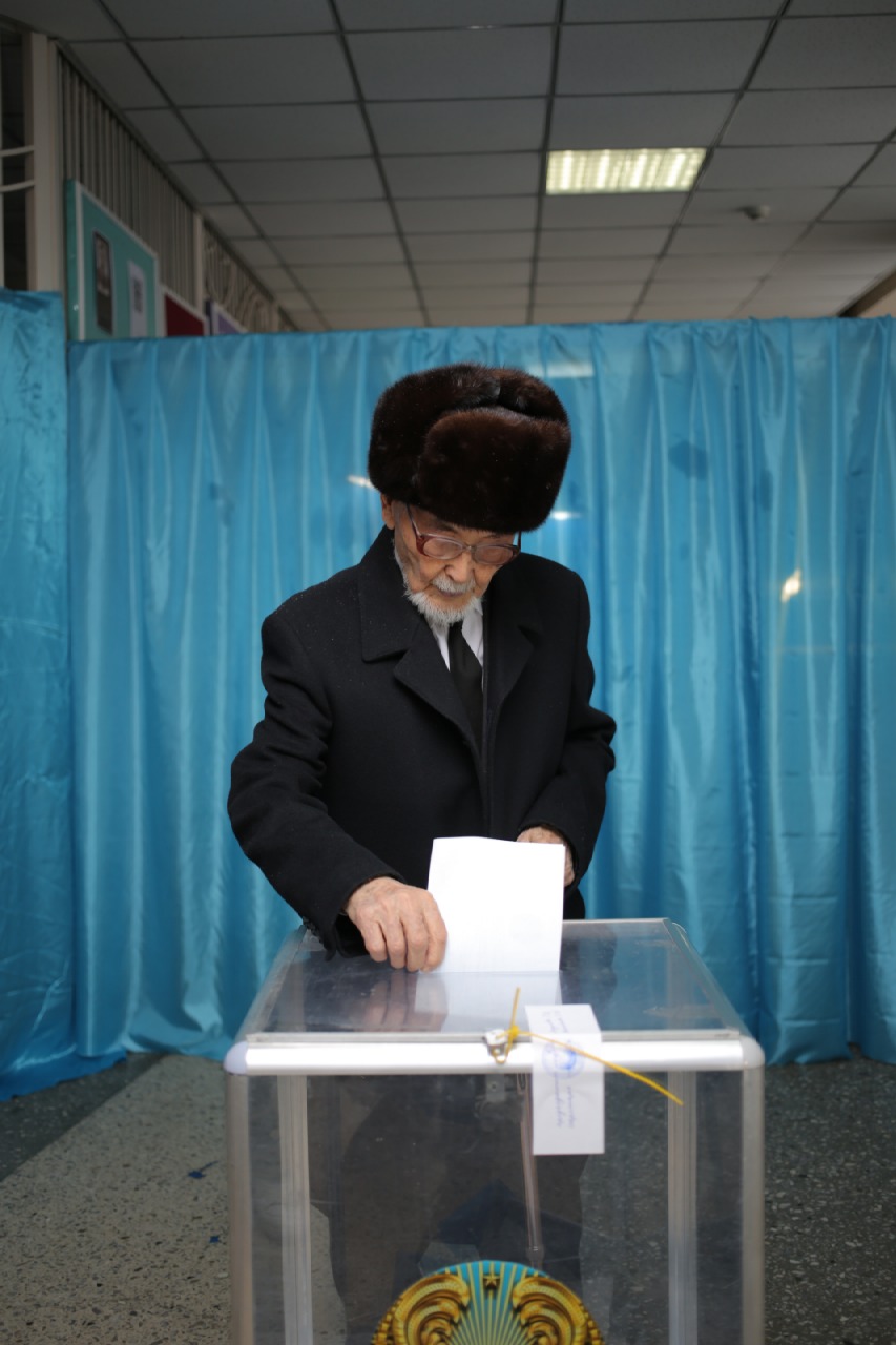 98 жастағы соғыс ардагері Құрмат Рахимов өзінің азаматтық ұстанымын білдіру үшін сайлау учаскесіне өзі баруға шешім қабылдады.